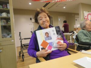 ご長寿のお祝いの方へ、職員お手製の色紙の