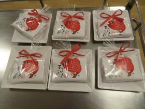 敬老の日のお祝いで、かわいい鯛の形をしたお饅頭